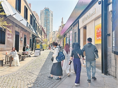 咖啡馆、买手店门前的绿植透出盎然春意,街巷虽然不长,却总能让漫步的人们在转角遇到惊喜。在这里,设计、潮流与生活共生,衣着时尚的年轻人们不时经过,与老里院的历史感交融出一种独特的惬意与松弛感。复古与潮流的交织,让人们流连于此,触摸着城市不同的脉动。在年轻人的带动下,头发花白的老人们也来到这里打卡、体验和消费。