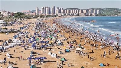 华表奖颁奖活动进一步提升青岛吸引力,“五一”假期金沙滩海水浴场迎来大客流,众多市民游客深度打卡。 梁 超 摄