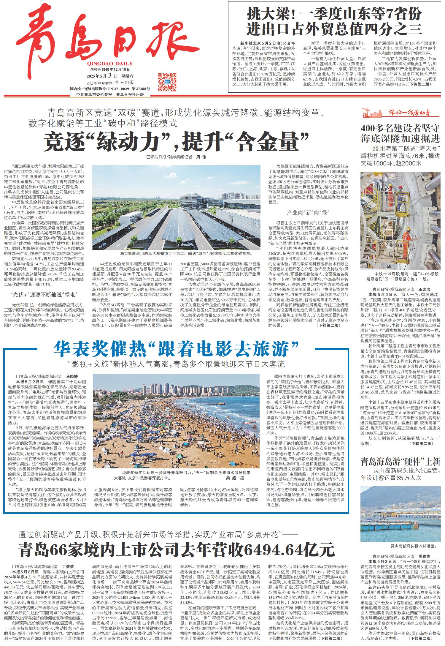 青岛66家境内上市公司去年营收6494.64亿元