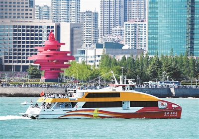 “五一”假期,“海上看青岛”航线成为市民游客争相打卡的热门之选。 王 雷 摄