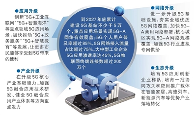 在升级5G核心产业基础能力、加强5G融合应用技术研发、健全5G融合应用产业体系等方向重点发力