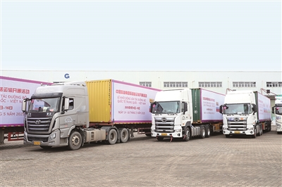 本报5月14日讯 14日,中国至越南河内国际道路运输线路开通活动同步在广西南宁、云南昆明举办。10点40分,随着发车指令声响,搭载着电子元器件、新鲜蔬菜、百货的运输车队从广西南宁、云南昆明同时发车,向越南河内驶去,标志着中方货运车辆持CBTA(大湄公河次区域便利货物及人员跨境运输协定)证件首次入境越南腹地,进一步提升了中越国际道路运输便利化水平。