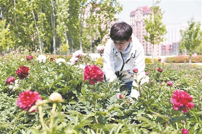 园林技术员杨凤丽是首批技术骨干之一。“牡丹在徐家东山长势喜人,头一年就有市民来问卖不卖。随着市场销量打开,我们每年要从成武县订购1500株牡丹,扩大种植面积。”她一边观察着牡丹的长势,一边向记者介绍,“现在这里有‘魏紫’‘景玉’等30多个牡丹品种,具有较高的观赏价值。”