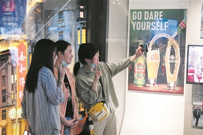 ■游客在青岛啤酒博物馆内打卡留念。 王雷 摄