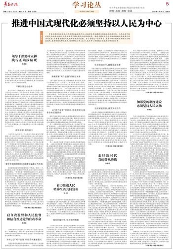 中国式现代化是全体人民共同富裕的现代化,是物质文明和精神文明相协调的现代化。人民性是中国式现代化的根本属性,人民立场是中国式现代化的鲜明底色。推进中国式现代化不仅要推动人民物质生活共同富裕,还要着力推进人民精神生活共同富裕。为了实现这一宏伟目标,党员干部必须树立和践行正确政绩观,走好新时代群众路线,做好群众工作,把以人民为中心贯彻到治国理政全部活动之中。