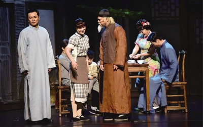 ■朱媛媛(左二)参演的话剧《四世同堂》曾在青岛上演。 王 雷 摄