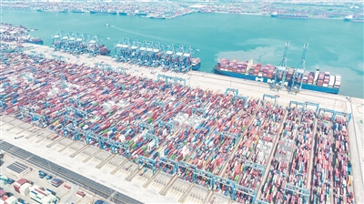 山东港口发力大模型建设,推进人工智能与业务场景深度融合。图为山东港口青岛港自动化码头一派繁忙景象。