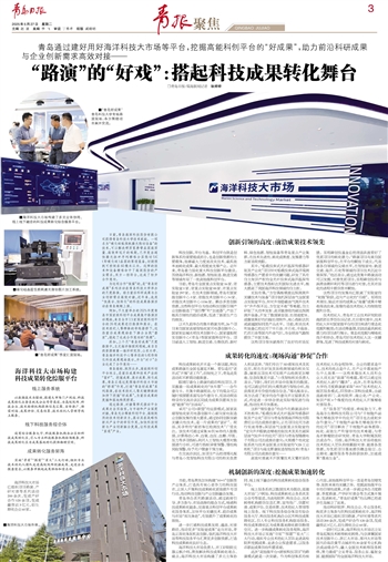 进一步打通科技成果发现、遴选、对接路径,推动更多“实验室成果”走向市场,青岛正深化体制机制创新,依托海洋科技大市场等科技服务平台汇聚更多创新资源,打造科技成果转化良好生态。