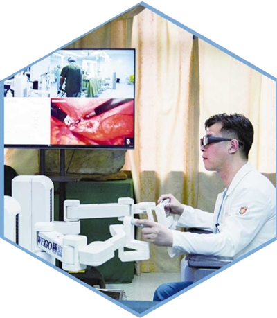■青岛大学副校长、青岛大学附属医院泌尿外科中心主任牛海涛在开展远程手术。