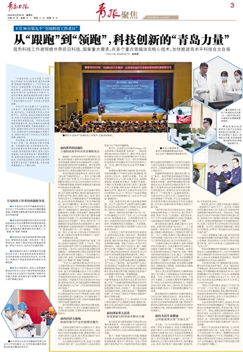 新发展阶段对战略科技支撑的需求比以往任何时期都更加迫切。青岛的科技工作者想国家之所想、急国家之所急,在关系全局和长远发展的领域积聚力量,持续进行原创性引领性科技攻关,形成系统化的科学技术解决方案,为国家战略需求提供了强劲的策源力。