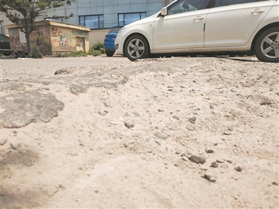 ■一辆轿车几乎擦着底盘驶过新建街上的一处减速丘。
