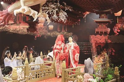 观赋格乐艺术中心是青岛邮轮母港打造的婚恋服务产业链中的重要一环。踏入观赋格乐艺术中心,一场《万邦来朝-梦回盛唐》沉浸式夜宴用年轻人钟爱的国风盛宴模式打开传统文化。金鞍炙霜肋、芥虾映沧海、凝脂鲛绡鳕……宴席上的每一道菜名都颇有创意,让味蕾邂逅唐诗意境。游客在穿唐装、吃美食、赏乐舞的同时,可与台上的表演者互动,学习唐装礼仪,或者加入诗词解谜游戏。