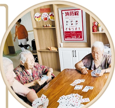 ■莱西市一家养老服务中心内,老人们正在打牌。