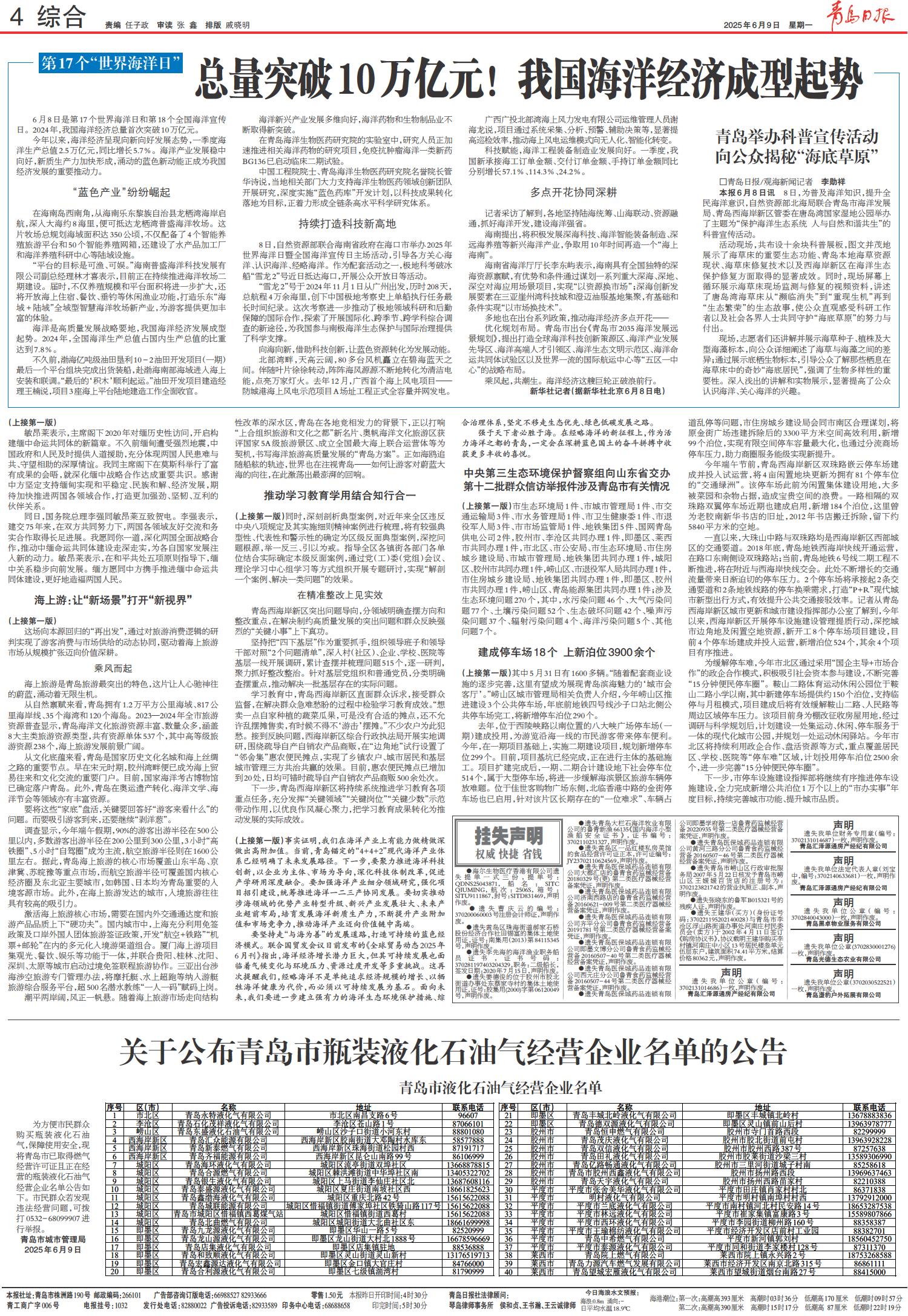 01 首版 02 要闻 03 青报聚焦 04 综合 05 城事·专题 06 未来教育 07 艺术青岛 08 青岛之夏