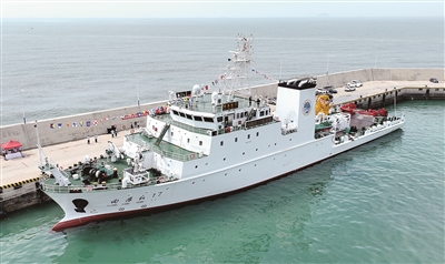 本报6月10日讯 10日,自然资源部北海局举行“向阳红17”科考船入列仪式,向停靠在青岛海洋科考基地码头的“向阳红17”船授旗。该船是北海区第一艘3000吨级专业大型浮标作业船,填补了我国北海区专业大型浮标作业船的空白。