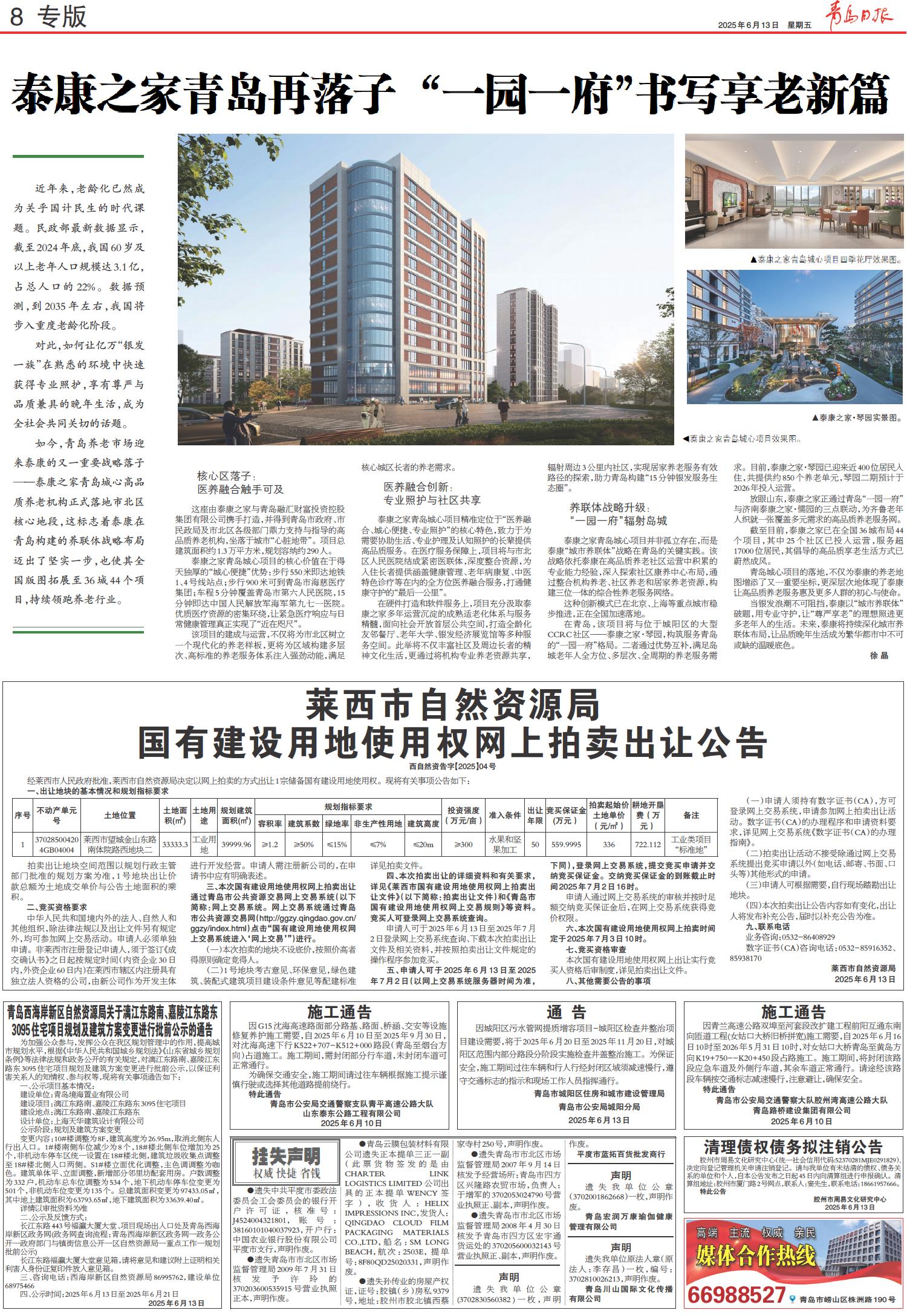 泰康之家青岛再落子 “一园一府”书写享老新篇