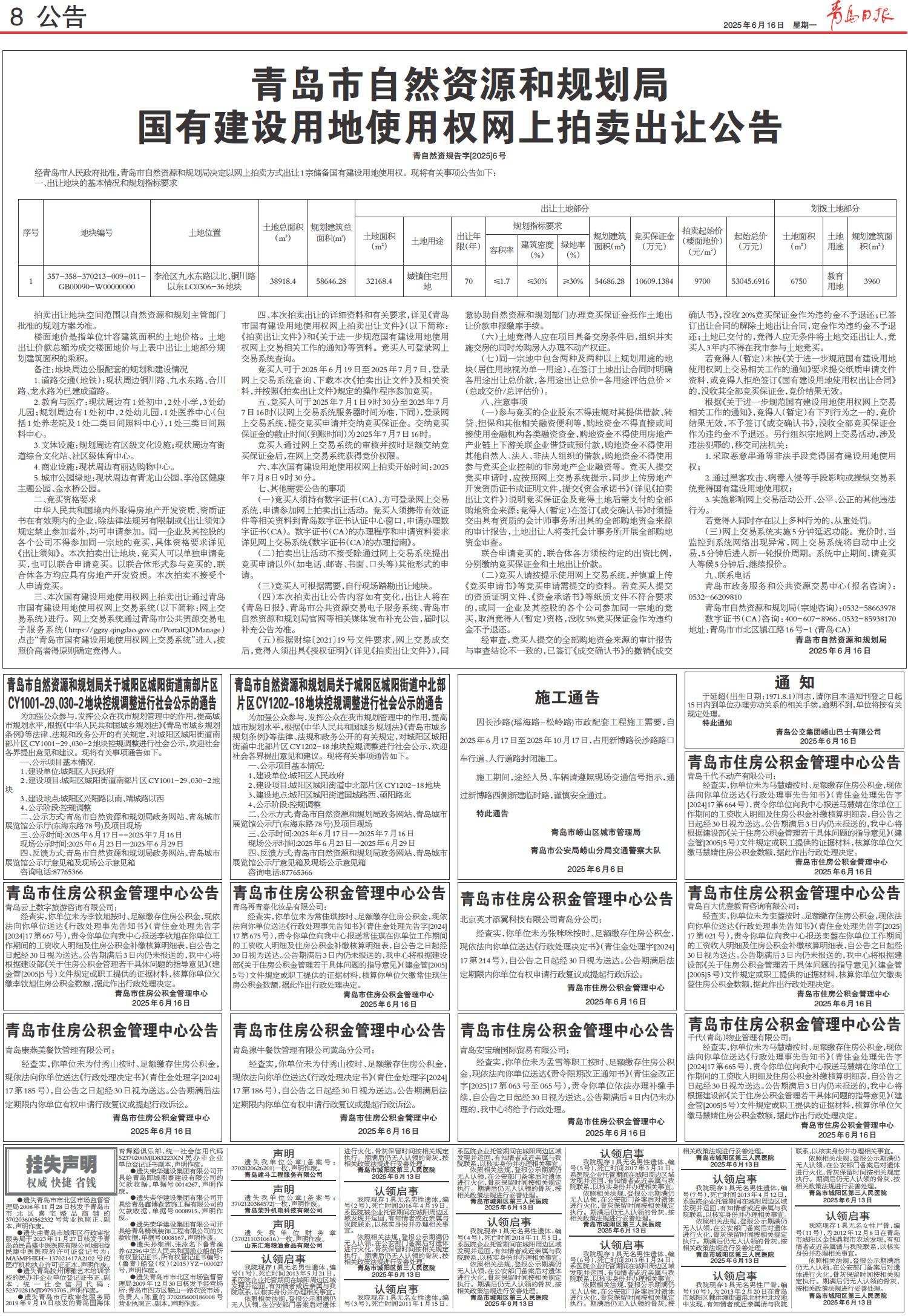青岛市自然资源和规划局国有建设用地使用权网上拍卖出让公告