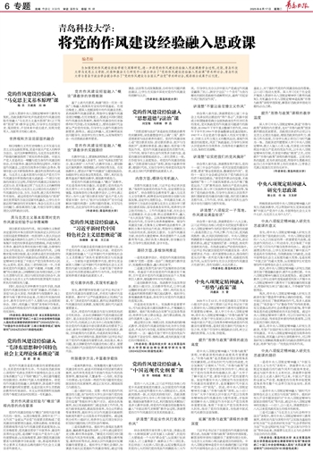 为加强党的作风建设经验学理化阐释研究,进一步将党的作风建设经验融入思政课教学全过程,近期,青岛科技大学马克思主义学院、纪委和廉洁文化研究中心联合举办了“党的作风建设经验融入思政课”学术研讨会,青岛科技大学与青岛市政治学会联合举办了“党的作风建设与全面从严治党”学术研讨会,现将部分成果予以刊发。