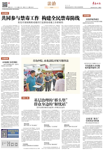 从田间地头的纠纷调解,到市井街巷的法律知识传递,从校园课堂的法治宣讲,到多方协同联动的解纷模式创新,胶州法院各基层法庭作为基层治理的“桥头堡”、群众身边的“解忧站”,持续为群众的幸福生活保驾护航。