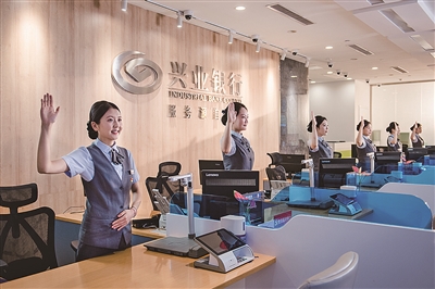 ■兴业银行青岛分行对公柜台服务。