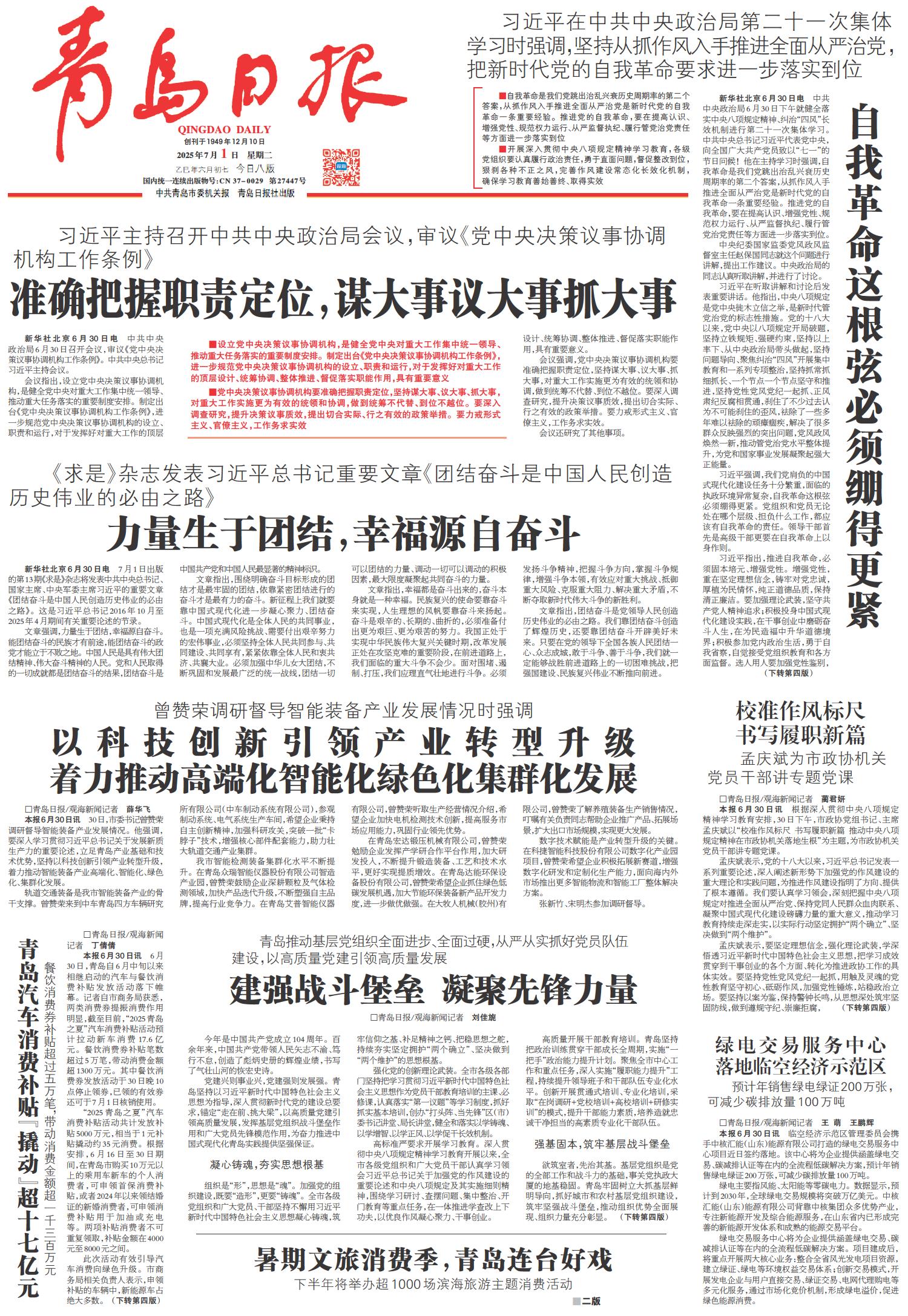 01 首版 02 要闻 03 青报聚焦 04 要闻 05 国内·专题 06 倾听与商量 07 专版 08 健康