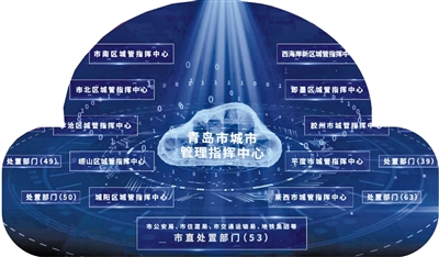 ■青岛在城市运行管理服务平台上建立了包括一个市中心、10个区(市)中心,53个市直部门(企业)及612个基层作业单位的智慧化指挥调度体系。