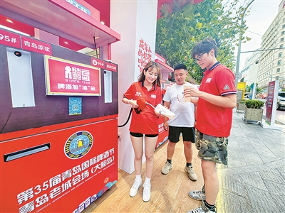 漫步大鲍岛文化休闲街区,人手一杯“现打扎啤”成了标配,金黄、乳白、玫红色的酒液折射着光影,5个“嗨啤吧”单日售出2000升啤酒,荔枝味果啤稳居销量榜首。潍县路的啤酒“加油站”里,6台加酒机如加油机般运作,0℃-5℃的恒温鲜啤扫码即出,有西安等外地游客专程“二刷”,只为这一口清爽。