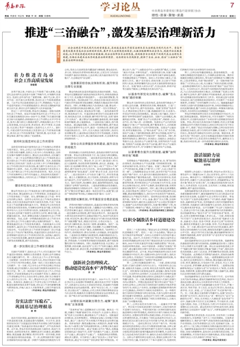 社会治理是中国式现代化的重要基石,其效能直接关乎国家治理体系与治理能力现代化水平。青岛市委党校聚焦青岛社会治理创新实践,展开多元治理维度的探索:从激活银龄群体社会参与,到提升社区服务效能;从乡村道德建设的积分制激励,到法治保障夯实治理根基,再到粮食安全视角下的现代农业治理体系构建,勾勒出共建共治共享的基层治理新图景。这些理论与实践探索,提供了自治、法治、德治“三治融合”的基层治理鲜活经验。