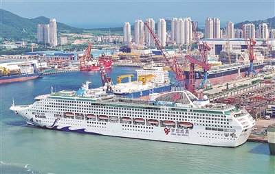 “梦想”号豪华邮轮在中国船舶集团青岛北海造船有限公司维修。 张进刚 摄