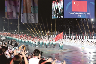 ■图为中国体育代表团在开幕式上入场。 新华社照片
