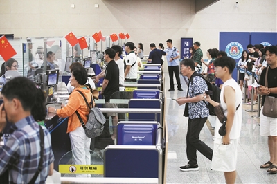 为便利旅客高效通关、促进中外人文交流,山东边检总站青岛机场边检站打出了一套高效、便民的“组合拳”。通过优化通关环境,在口岸显著位置增设易识别的韩语标识标牌,减少语言沟通障碍;组建由精通英语和韩语的执勤民警组成的“琴翼国门”志愿服务队,开展引导分流,提前解答疑问,指导填写入境卡,大大缩短旅客在查验通道前的等待时间;加强入境卡网上申报和生物信息采集“双前置”、快捷通道备案通关、出入境人员“分区通关”等系列配套措施应用,有效保障庞大客流的顺畅通行,展现新时代中国口岸便捷高效的国际化新形象。