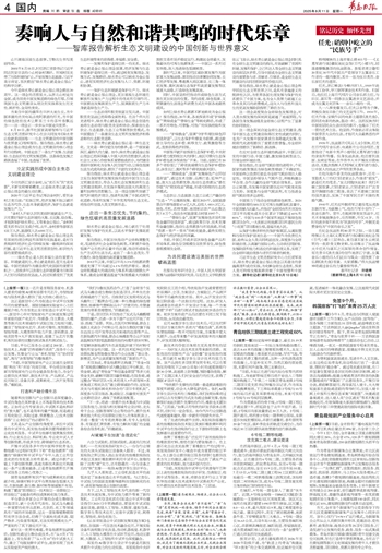 报告指出,中国加快推动产业结构调整优化,促进经济社会全面绿色转型,不断提升绿色低碳产业在经济总量中的比重,推动形成绿色生产方式和生活方式,走出了一条生态优先、节约集约、绿色低碳的高质量发展道路。