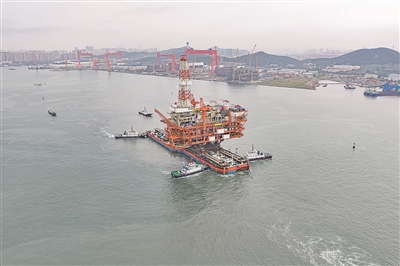 ■8月14日,惠州25-8项目DPPB组块在青岛离港起运。