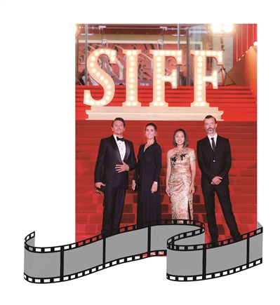 ■宁宁(左三)与《瓦朗索尔1965》剧组走上上海电影节红毯。