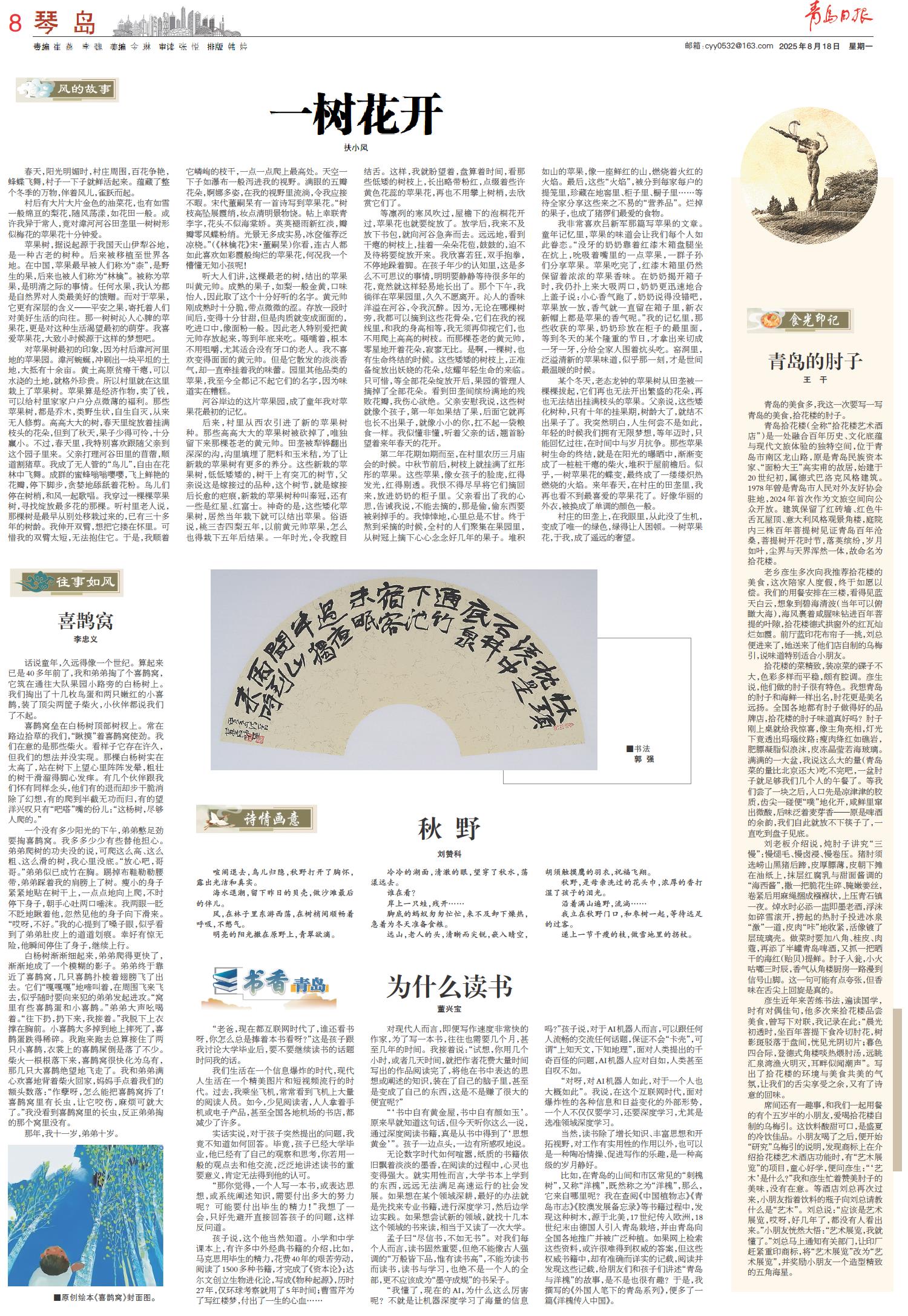 01 首版 02 要闻 03 青报聚焦 04 城事·专题 05 科创前沿 06 未来教育 07 艺术青岛 08 琴岛