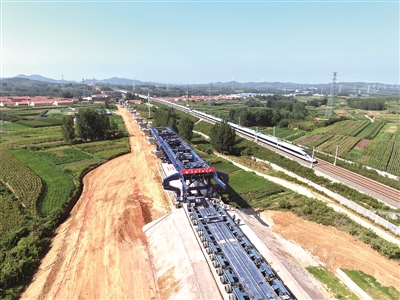 本报8月22日讯 青岛南下高铁新通道传来建设新进展。22日上午,在西海岸新区沙河中村特大桥施工现场,潍宿高铁至青岛连接线1标段开始架设首榀箱梁,这标志着青岛连接线全线开始架梁,工程全面进入上部结构施工阶段。