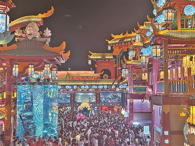 来到这里,国内首个山海经主题夜游街区“明月·山海间”不容错过。夜风吹来,华灯点亮,国风主题的街区里转角就能与特色演艺不期而遇,带来意想不到的惊喜。不仅本地市民青睐有加,不少外地的旅行团更是慕名而来。漫步其间,仿佛走进了传统文化的天地。