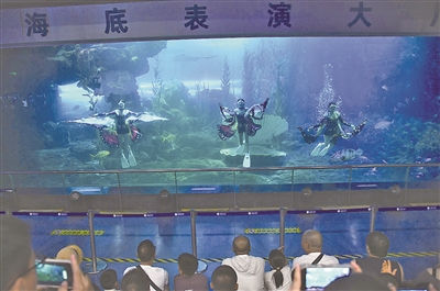 ■海底“荧光奇妙夜”等活动吸引更多的游客夜游青岛海底世界。
