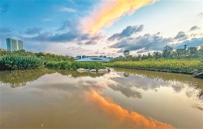 ■一抹彩霞投映在生态修复后的张村河上。 邢志峰 摄