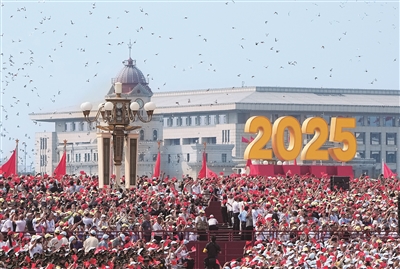 ■9月3日,纪念中国人民抗日战争暨世界反法西斯战争胜利80周年大会在北京隆重举行。这是纪念大会现场放飞和平鸽。 新华社照片