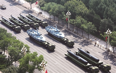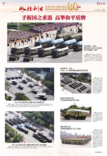 ■以快制强,极速打击。高超声速导弹方队受阅的鹰击-21、东风-17、东风-26D导弹,飞行速度快、突防能力强、命中精度高,是具备全天候作战能力的新型杀手锏。