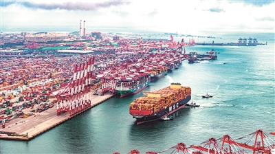 在当前全球经贸环境不稳定、不确定性加剧的背景下,青岛港延伸港口服务功能,提升物流畅通能力,为“新三样”产品打通出海“快车道”,实现全球主要汽车消费市场全覆盖,助力外贸结构优化升级。