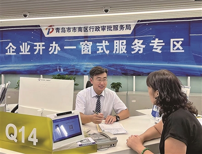 ■“市南区企业开办一窗式服务专区”为市场主体注册登记提供便捷高效的审批服务。
