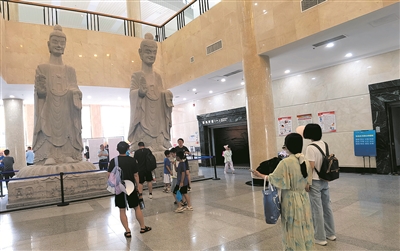 ■博物馆一楼的两尊北魏石佛造像是青岛市博物馆镇馆之宝之一。