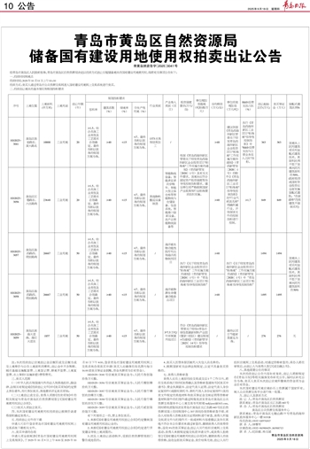 经青岛市黄岛区人民政府批准,青岛市黄岛区自然资源局决定以拍卖方式出让五幅储备地块的国有建设用地使用权。现将有关事项公告如下: