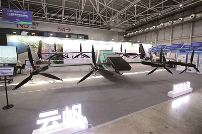 ■青岛地铁牵头承办的N5馆内,展出大型多用途垂直起降无人机。