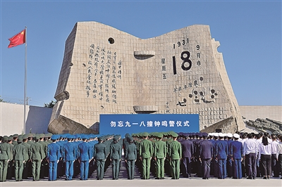 新华社沈阳9月18日电(记者赵洪南 洪可润)今年是九一八事变爆发94周年。18日上午,社会各界人士在沈阳隆重集会,举行勿忘九一八撞钟鸣警仪式,以铭记历史、缅怀先烈。