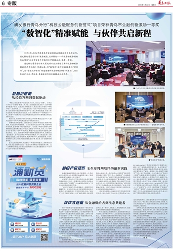 今年8月,2024年度青岛市金融创新成果激励项目名单公布,浦发银行青岛分行的“数智赋能,伙伴银行——科技金融服务创新范式项目”从全市百余个申报项目中脱颖而出,荣膺一等奖。