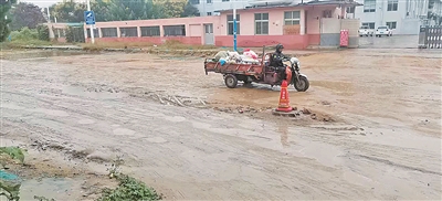 ■幸福里小区北门外的洛阳路雨后泥泞。