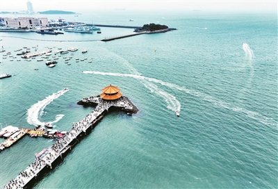 国庆中秋假期伊始,栈桥景区迎来陆上、海上大客流。 王 雷 摄